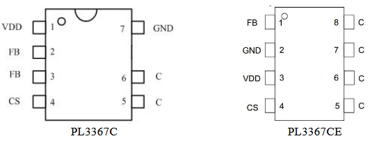 PL3367CE內(nèi)置了多種保護功能,包括逐周期限流保護、VDD過壓/欠壓保護、輸出開/短路保護、過溫保護等。當(dāng)PL3367CE的VDD電壓下降到UVLO(ON),芯片將不工作,同時會進入重啟狀態(tài)。