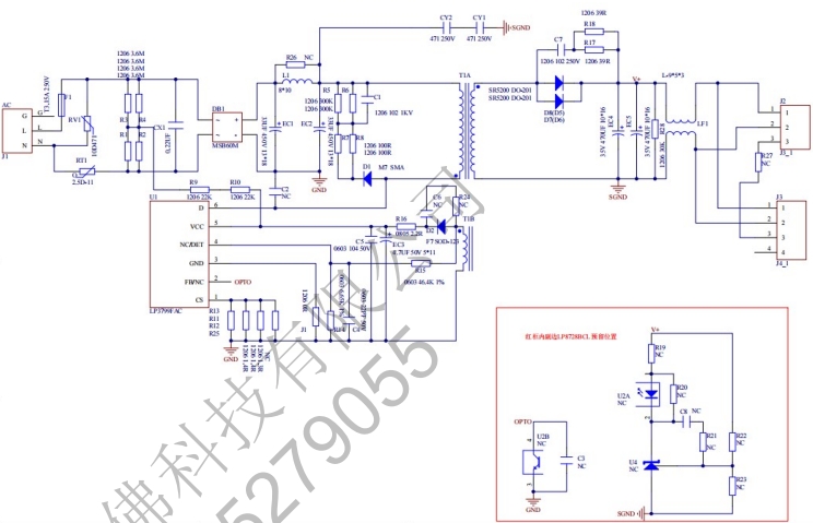 LP3799FAC內部集成大于 650V 高壓功率管,采用特有的檢測方式和算法,系統(tǒng)可以工作在恒壓和恒流兩種狀態(tài)。LP3799 采用原邊反饋控制方式,可省略光耦和TL431,可以工作在 DCM 和 CCM 兩種工作方式。
