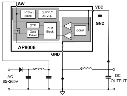 AP8006廣泛應(yīng)用于各種小功率非隔離開關(guān)電源領(lǐng)域,如: