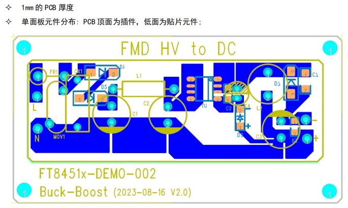 FT8451B的PCB布局設(shè)計(jì)同樣精心考慮。采用單面板設(shè)計(jì),元件分布合理,便于生產(chǎn)和維護(hù)。PCB厚度為1mm,尺寸為70mm×33.5mm,這種尺寸設(shè)計(jì)既保證了足夠的元件布局空間,又不會(huì)使PCB過(guò)大,影響設(shè)備的整體體積和便攜性。在元件分布上,PCB頂面主要為插件元件,底面則為貼片元件。這種分布方式充分利用了PCB的空間,提高了空間利用率,同時(shí)也便于元件的焊接和安裝。