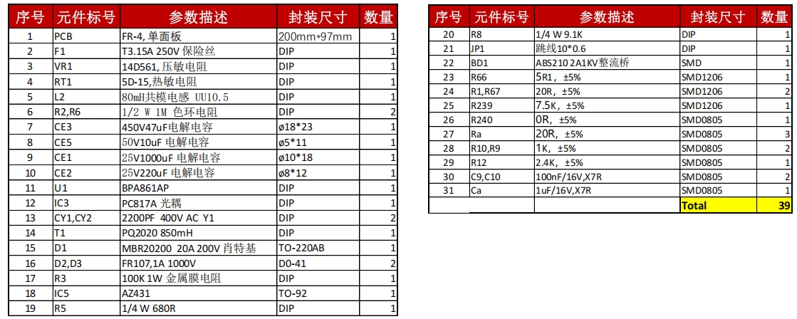 以下是BPA861AP電源方案的BOM清單: