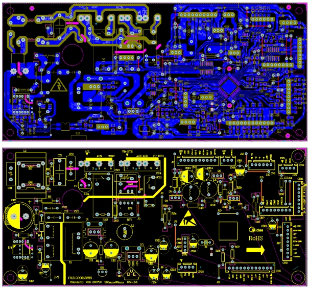 在布線方面,電源輸入端和輸出端的走線盡量加粗,以降低線路阻抗,減少電壓降。同時(shí),高頻信號線和敏感信號線之間保持足夠的間距,避免信號干擾。此外,PCB還設(shè)置了足夠的接地平面,以提高電源的抗干擾能力。