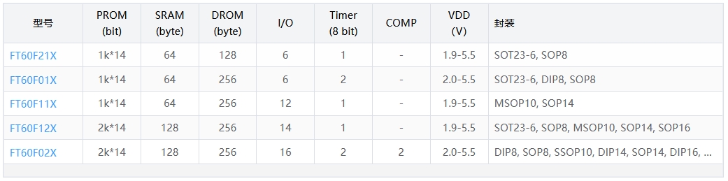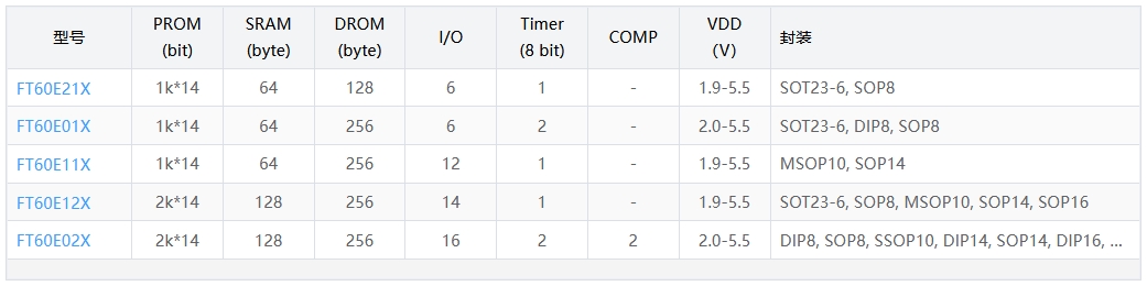 例如:FT60F21X ? FT60E21X,只是 DROM 擦寫(xiě)壽命從 100 k 提升到 1 000 k,價(jià)格貴 3~5 分錢。