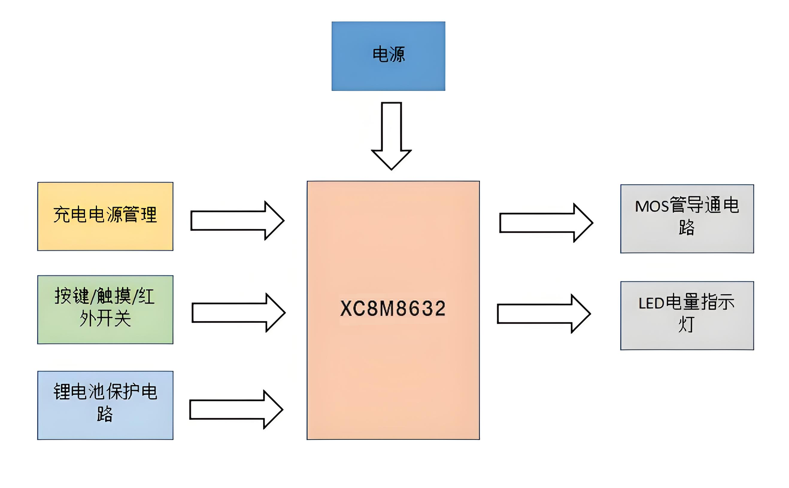 在本方案中,主控電弧打火機(jī)芯片采用矽杰微單片機(jī)XC8M8632,支持定制開發(fā)(比如:觸摸開關(guān)、紅外開關(guān)、電量顯示等),該點(diǎn)煙器芯片主要負(fù)責(zé)功能如下: