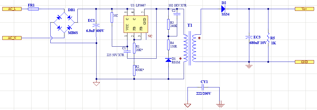 在微型化、低功耗LED照明應用中,隔離型輔助電源始終是工程師關注的重點。深圳三佛科技所代理推出的 LP3667AH 方案,以 2.5W輸出功率、雙繞組結構、極簡BOM 為特色,成為小功率LED模塊、智能開關、家電指示燈等場景的理想之選。本文將結合 原理圖、PCB實物圖、變壓器資料,全面拆解LP3667AH的設計亮點與實戰(zhàn)要點。