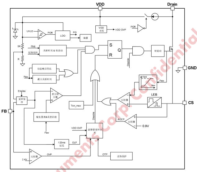 所有型號均內(nèi)置 500V 高壓 MOSFET、高壓啟動電路、多模式 PWM 控制器,支持 Buck 和 Buck-Boost 拓?fù)洌?strong>默認(rèn) 12V 輸出(FB 腳懸空),待機(jī)功耗 <50mW。