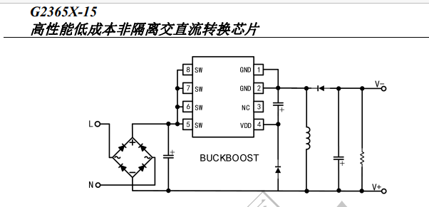 G2365X-15 是一款高集成度、高性能、低待機功耗的開關電源芯片,適用于非隔離開關電源應用。