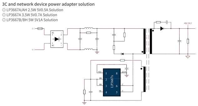 LP3667AH是一款專為隔離型適配器和充電器設(shè)計(jì)的自供電PSR控制芯片。它具有以下特點(diǎn):